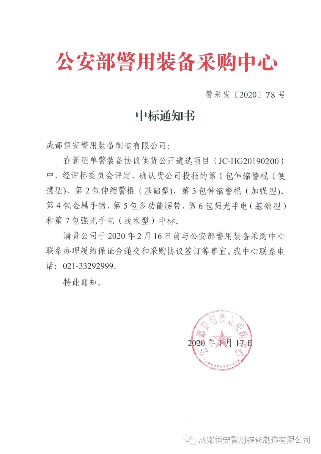 公安部新型單警裝備協(xié)議供貨 入圍企業(yè)--成都恒安警用裝備制造有限公司